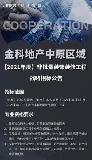 金科地产中原区域2021年度非批量装饰装修工程战略招标公告