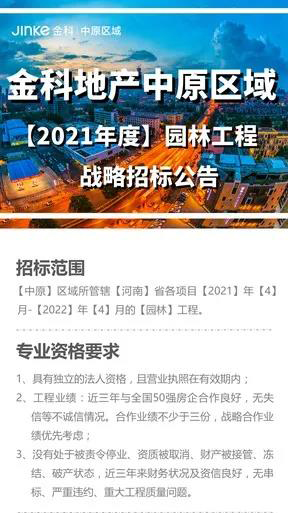 链筑网 招采信息 金科地产中原区域2021年度园林工程战略招标公告