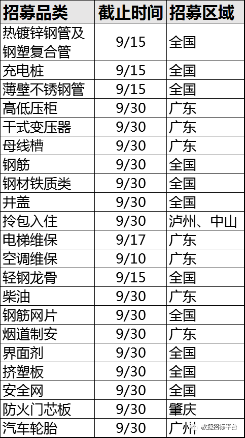 2023年敏捷集团9月材料及设备类供应商招募